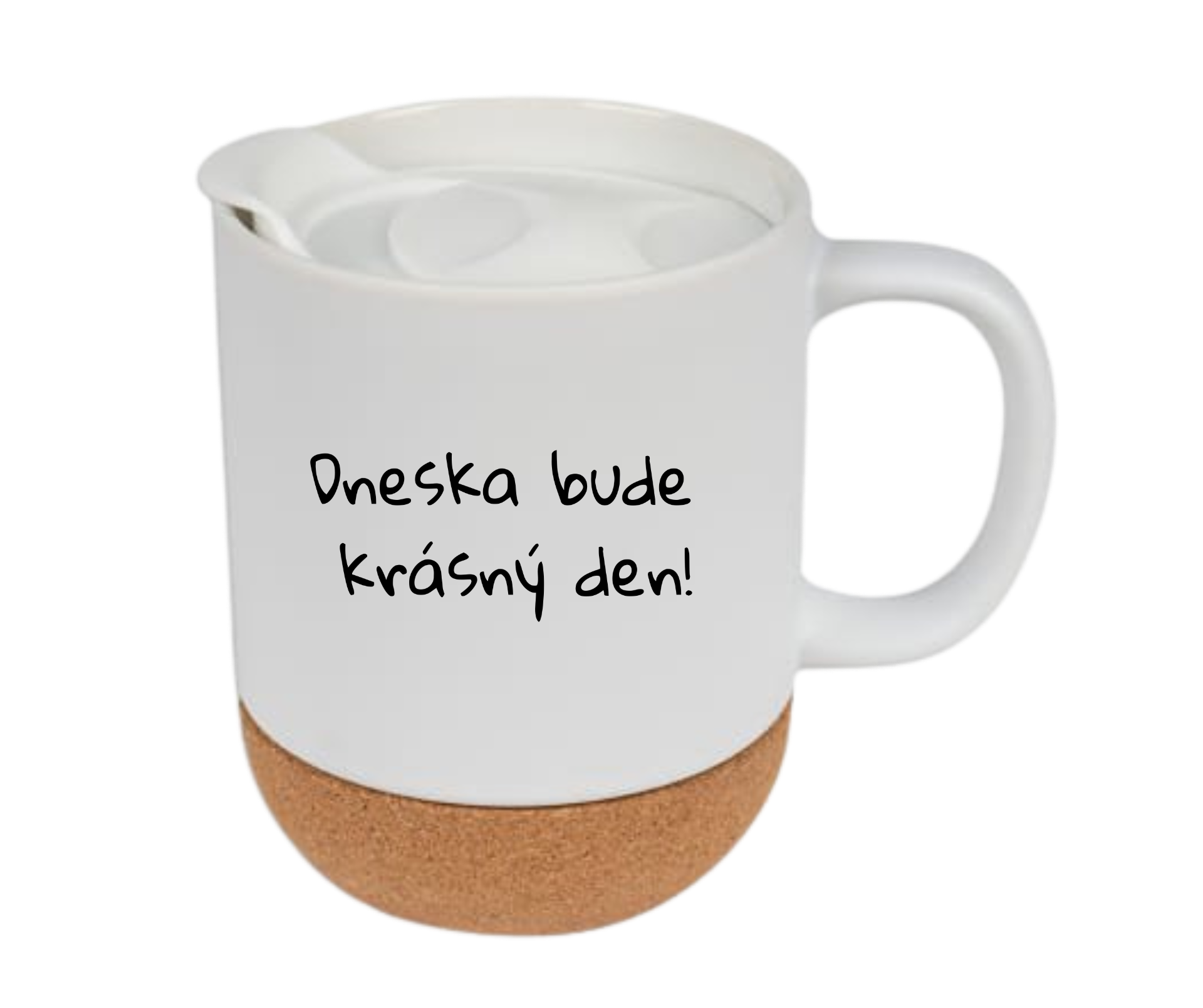 - keramický, matný hrnek s korkovým dnem, s víčkem, korkové dno se dá sundat - objem 400 ml- užitný objem 350 ml- potisknutelná plocha 210 x 70 mm